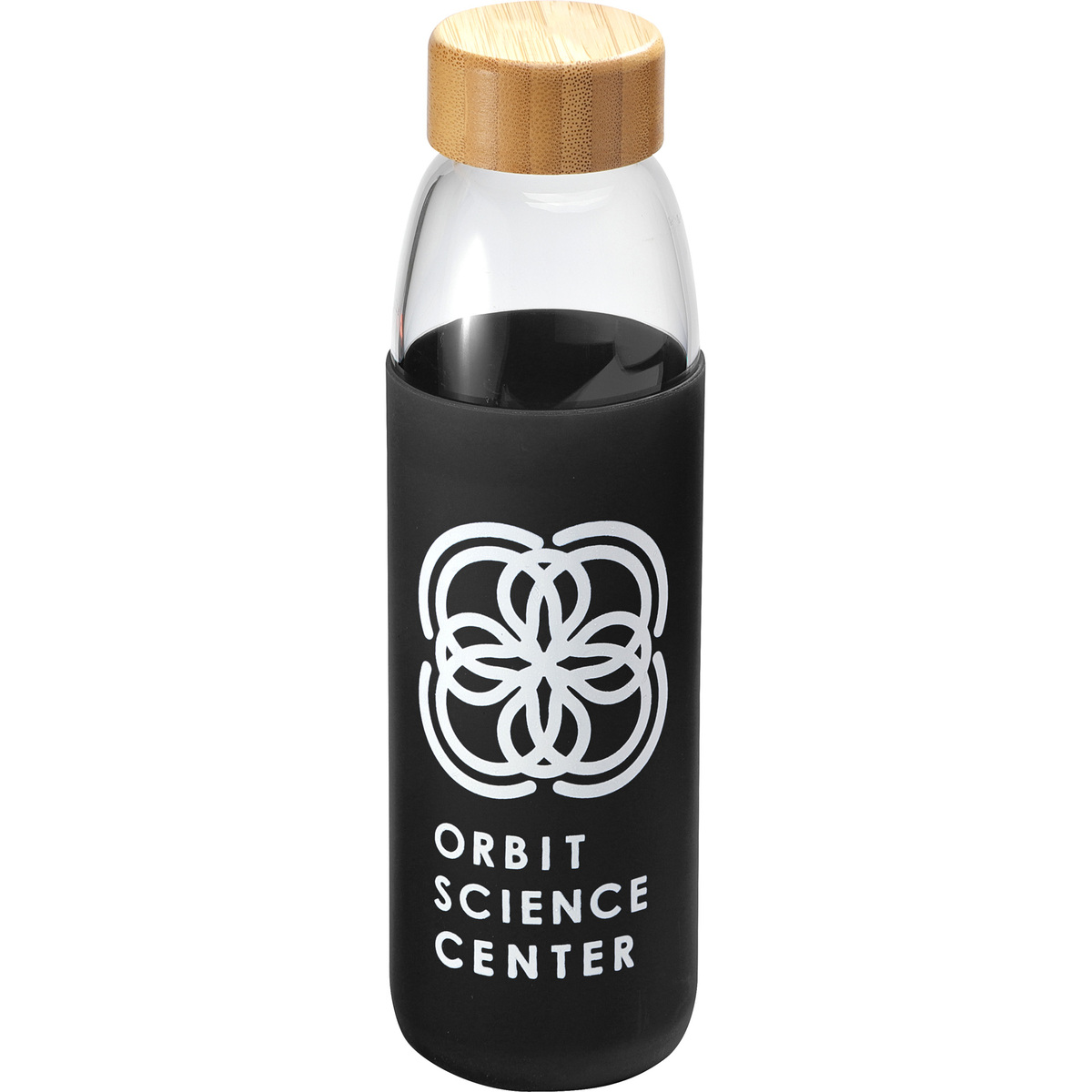 The Kai Glass Bottle 18oz is a single-wall borosilicate clear glass bottle wrapped with soft grip silicone sleeve. It features a bamboo screw-on lid and is BPA free. It's non-slip bottom fits in most car cup holders. Do not freeze or microwave. Choose between color imprinting or our new cutting edge, dishwasher safe, laser decoration method. White Ink Only.